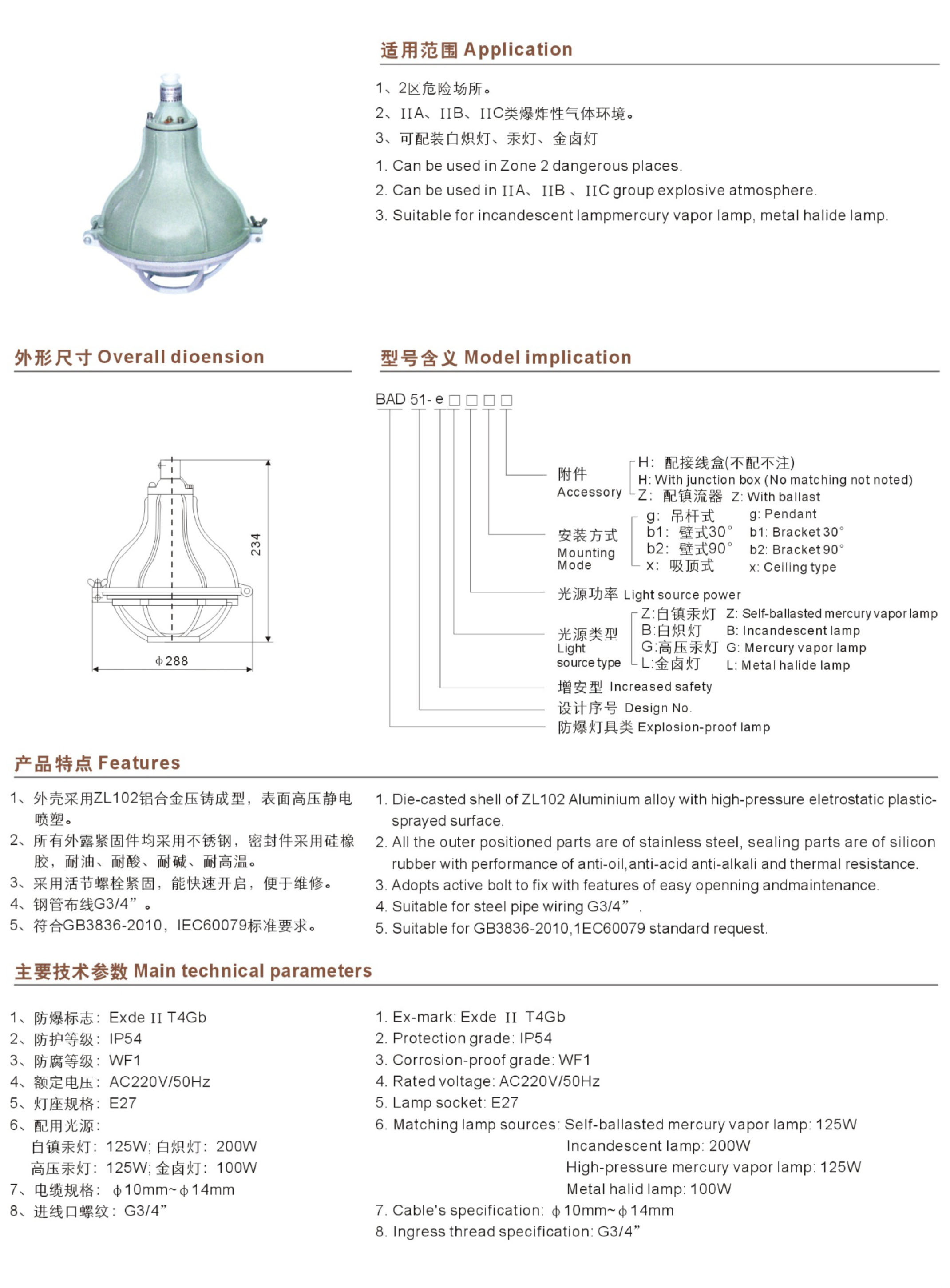 BAD51-e系列增安型防爆灯(e)