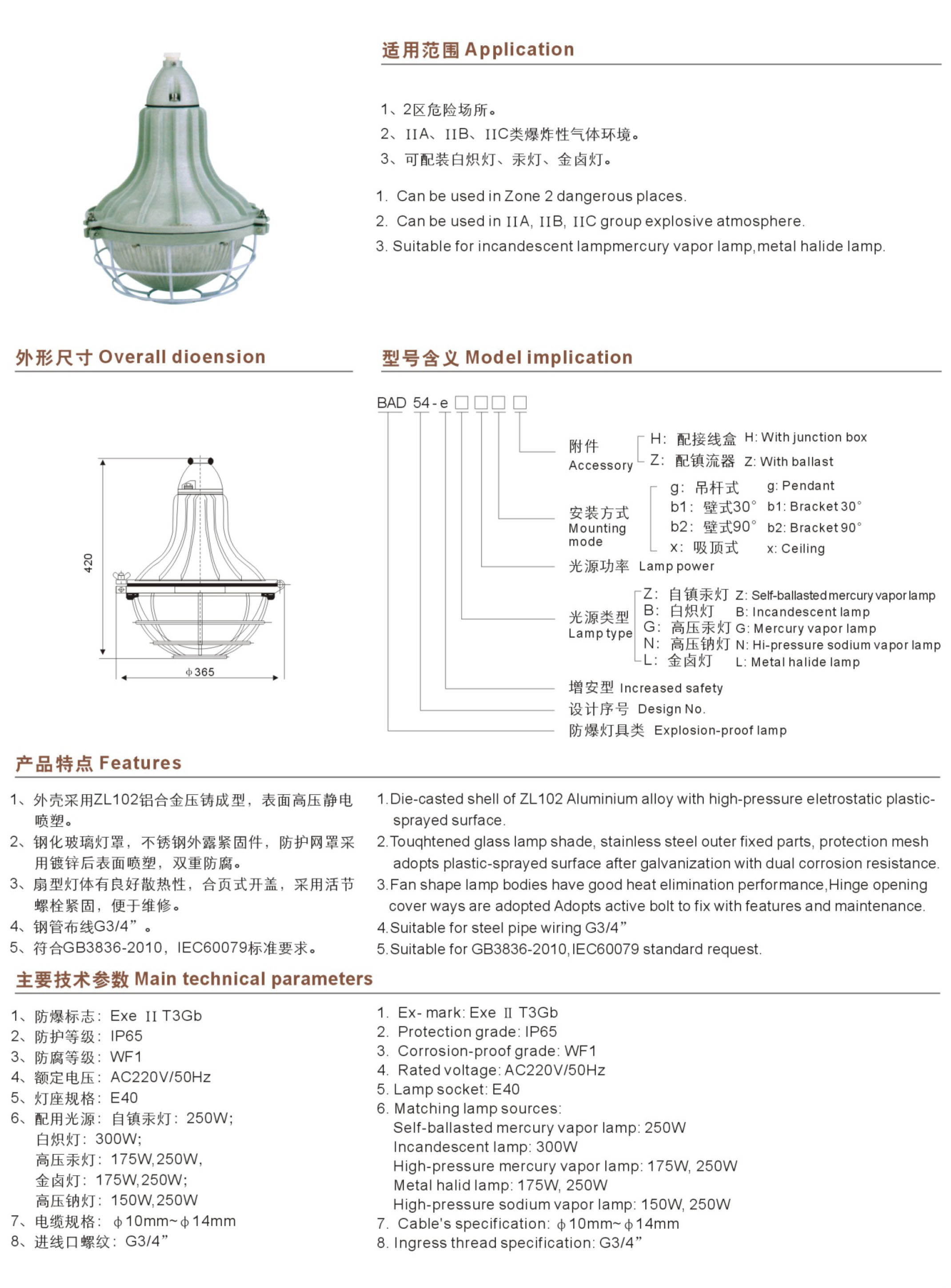 BAD54-e系列增安型防爆灯(e)