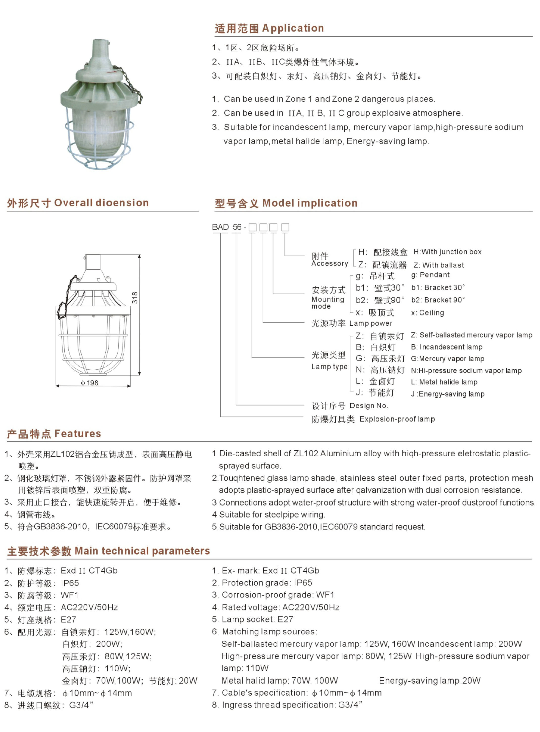 BAD56系列隔爆型防爆灯(ⅡC)