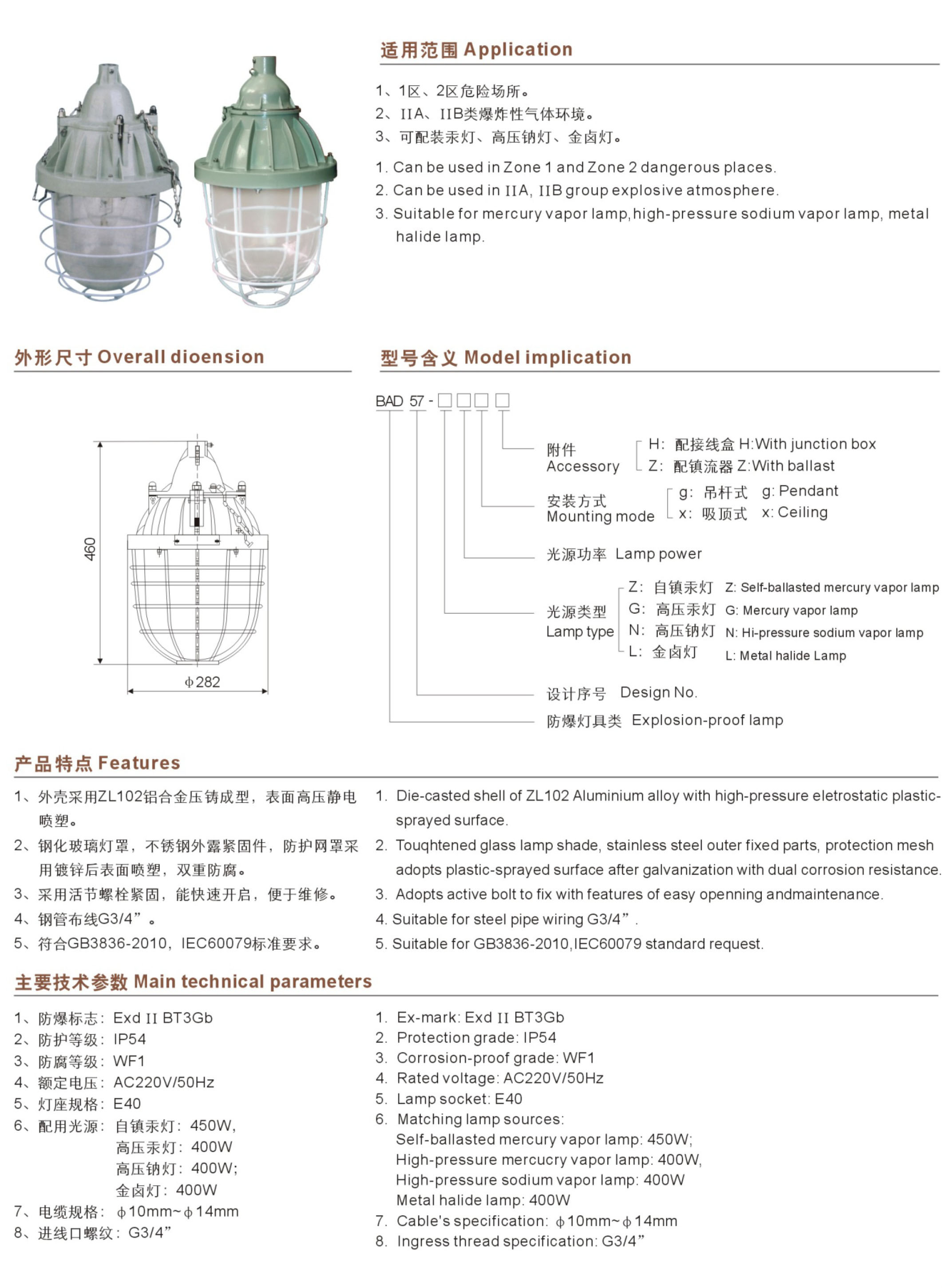 BAD57系列隔爆型防爆灯(ⅡB)