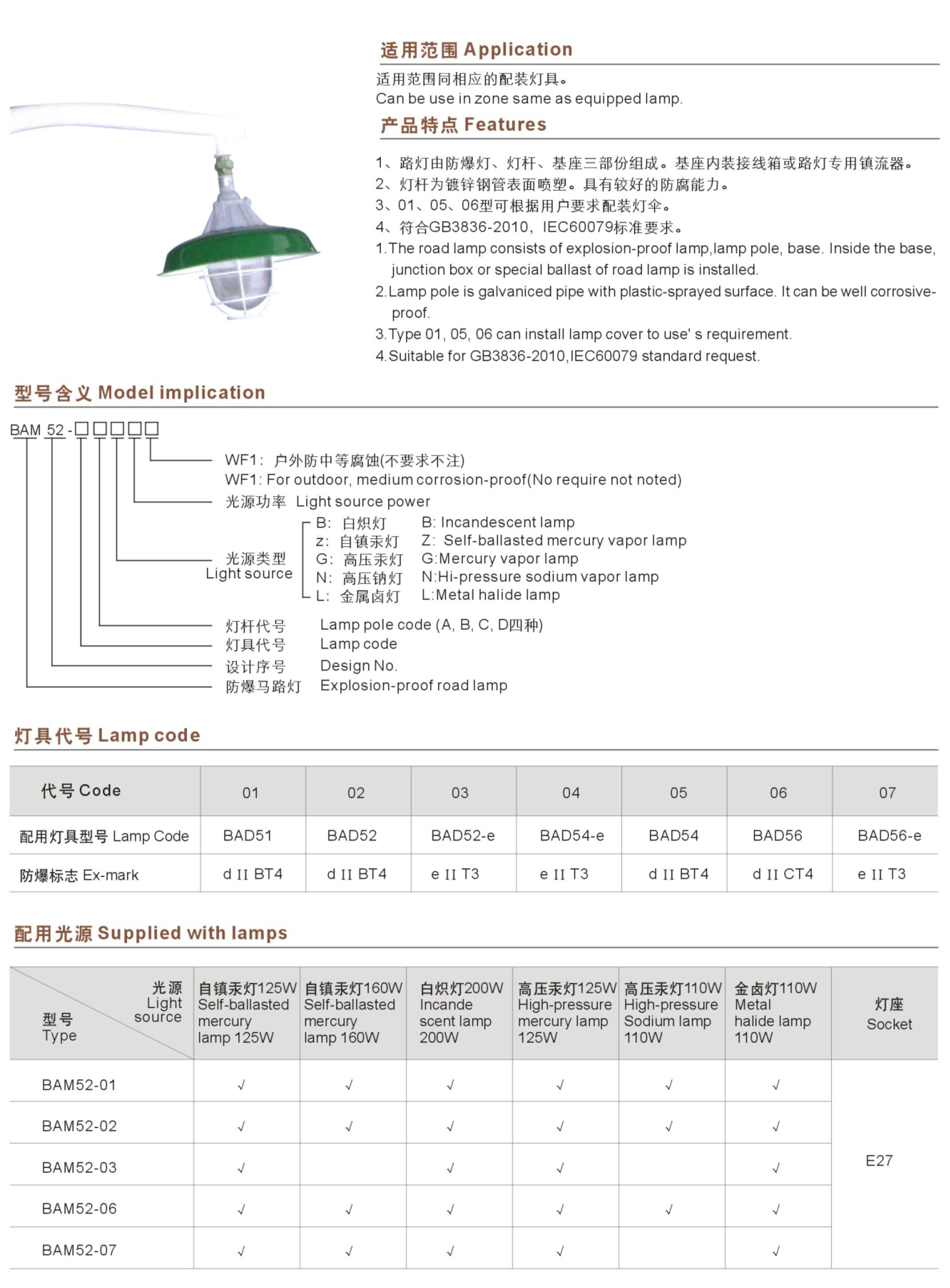 BAM52系列防爆马路灯(ⅡB、ⅡC、e)