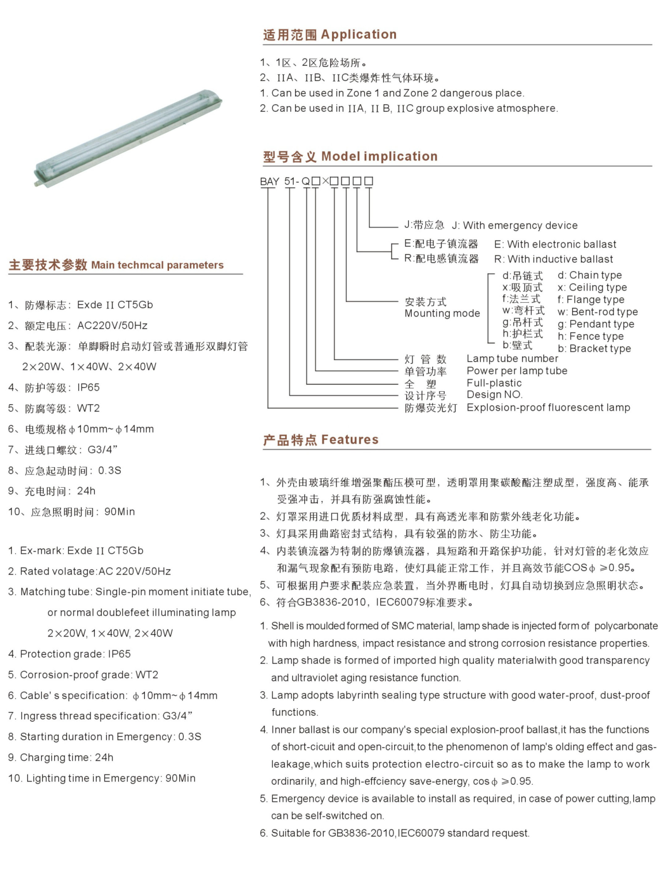 BAY51-Q(BYS)系列防爆防腐全塑荧光灯(ⅡC)