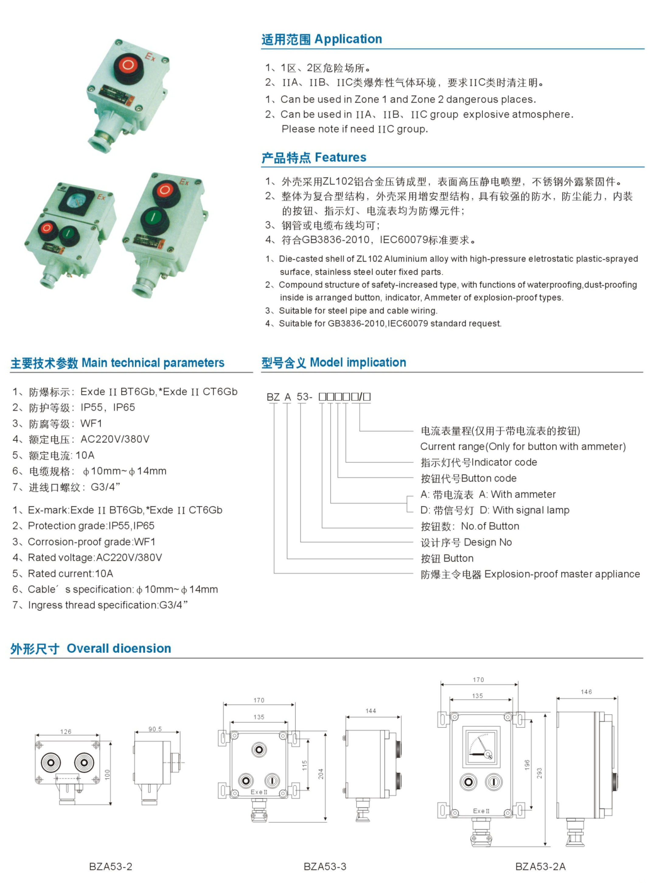 BZA53系列防爆控制按钮(ⅡB、ⅡC)