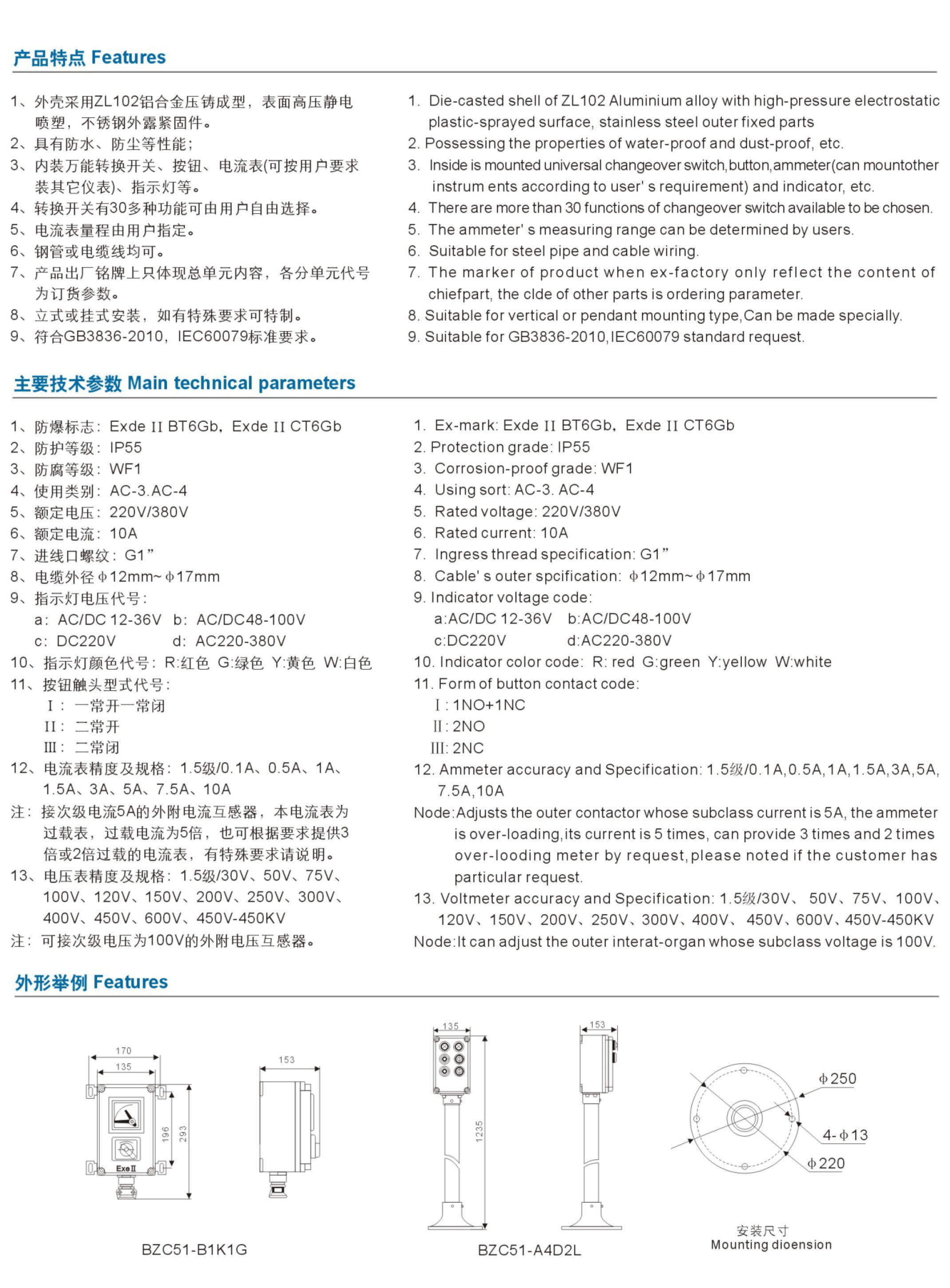 BZM8050系列防爆防腐照明开关(ⅡC)