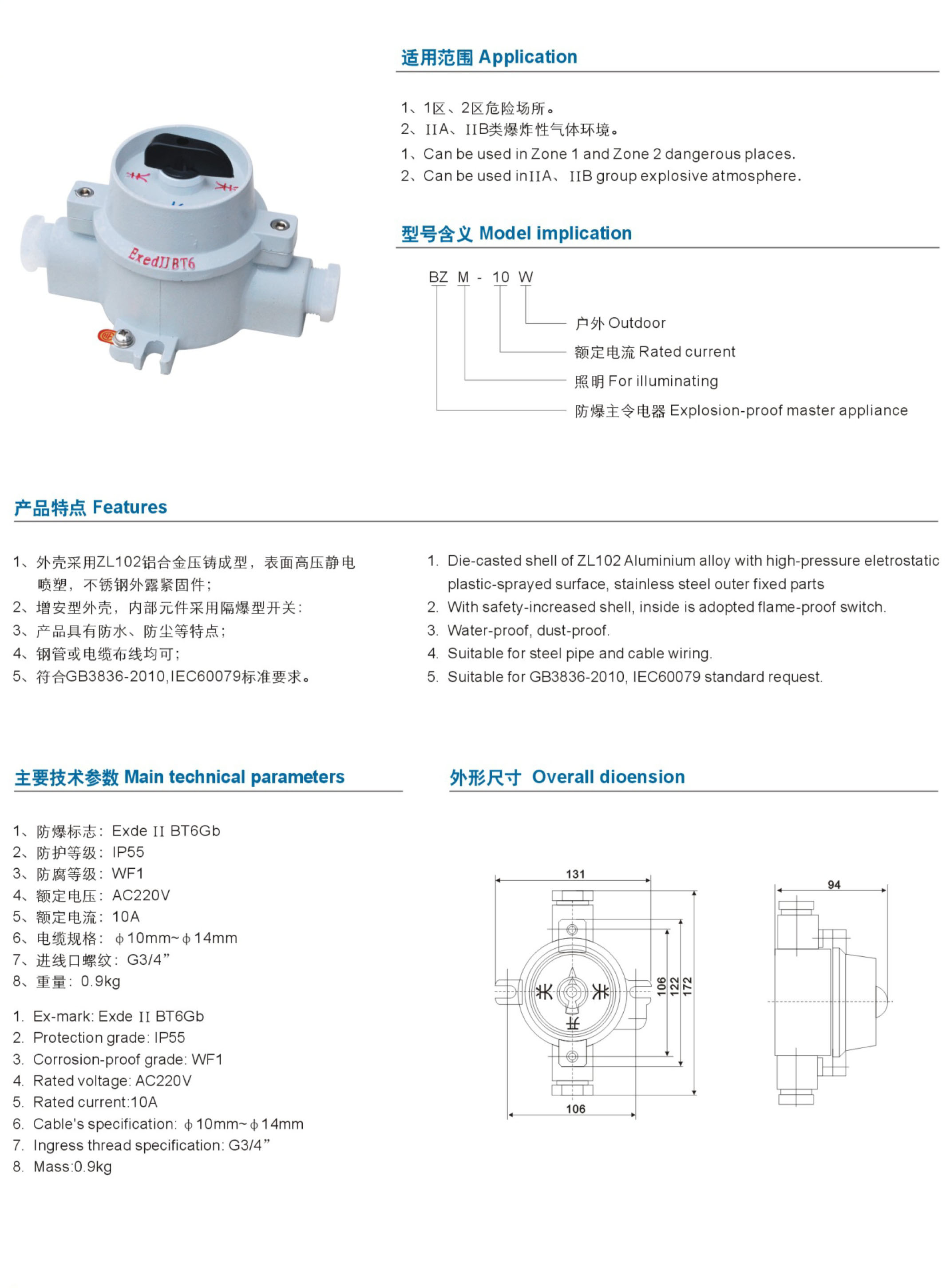 BZM-10(SW-10)系列防爆照明开关(ⅡB、Ⅱc)