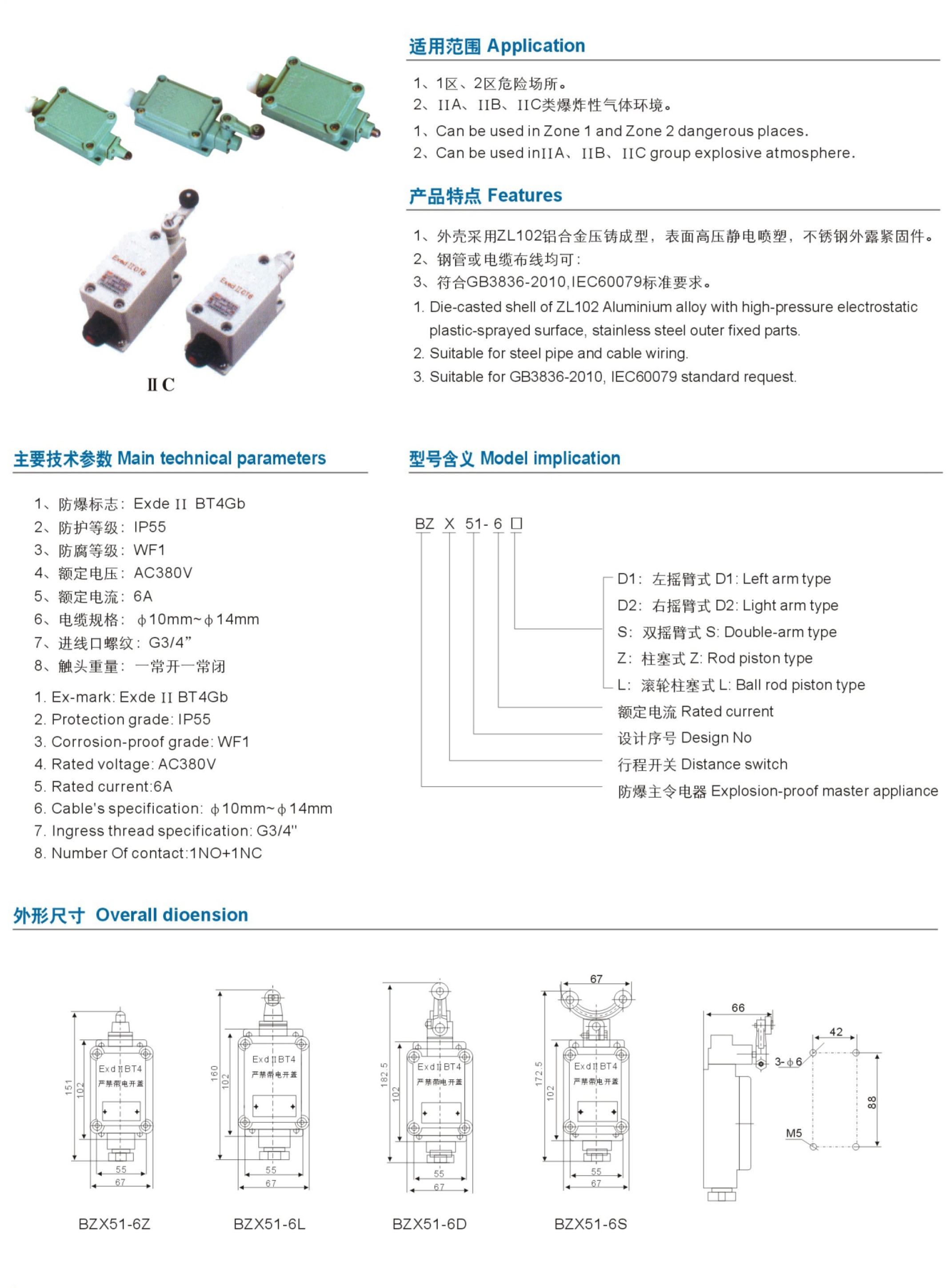 BZX51-系列防爆行程开关(ⅡB、ⅡC)