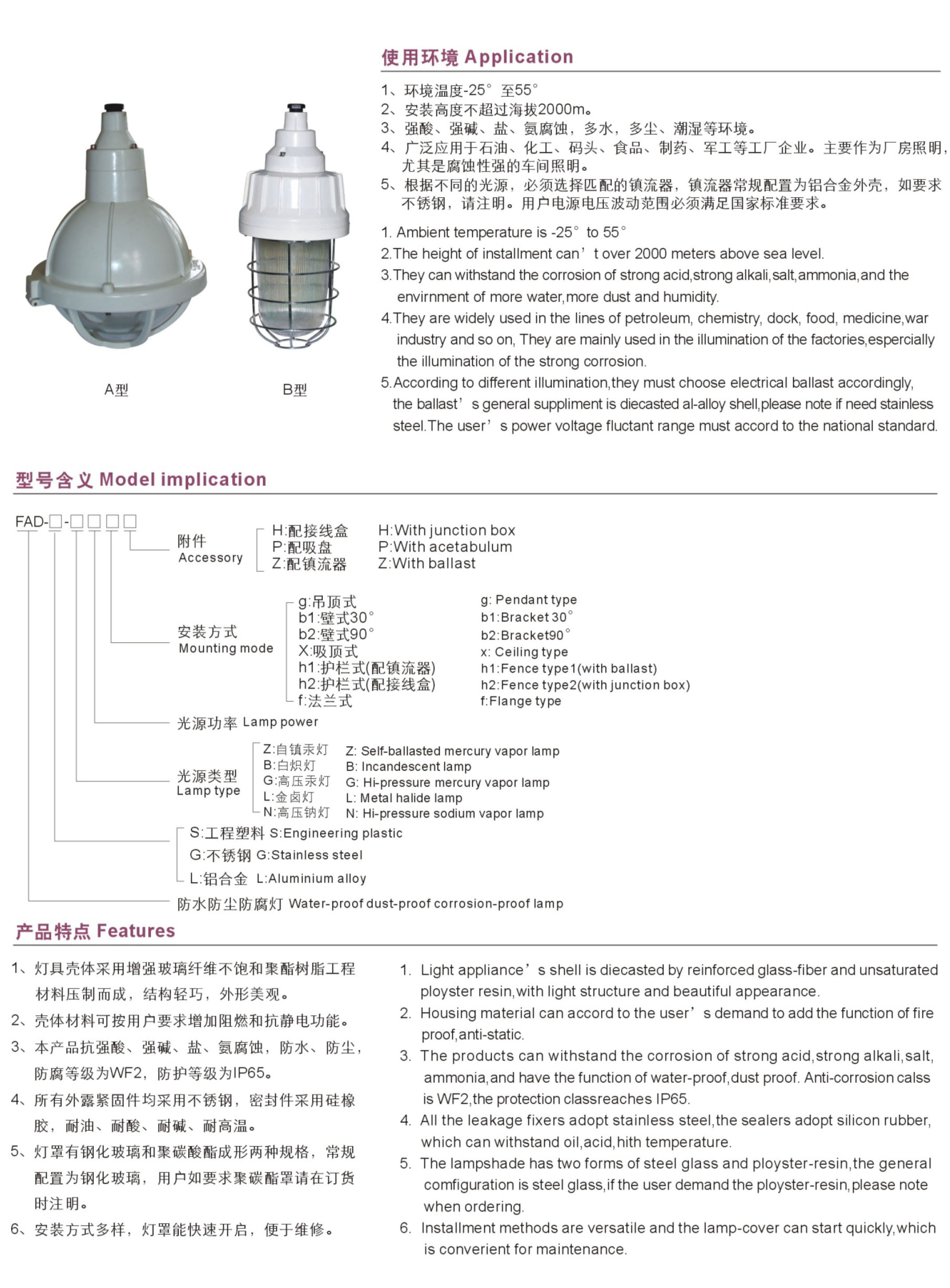 FAD-□系列防水防尘防腐灯