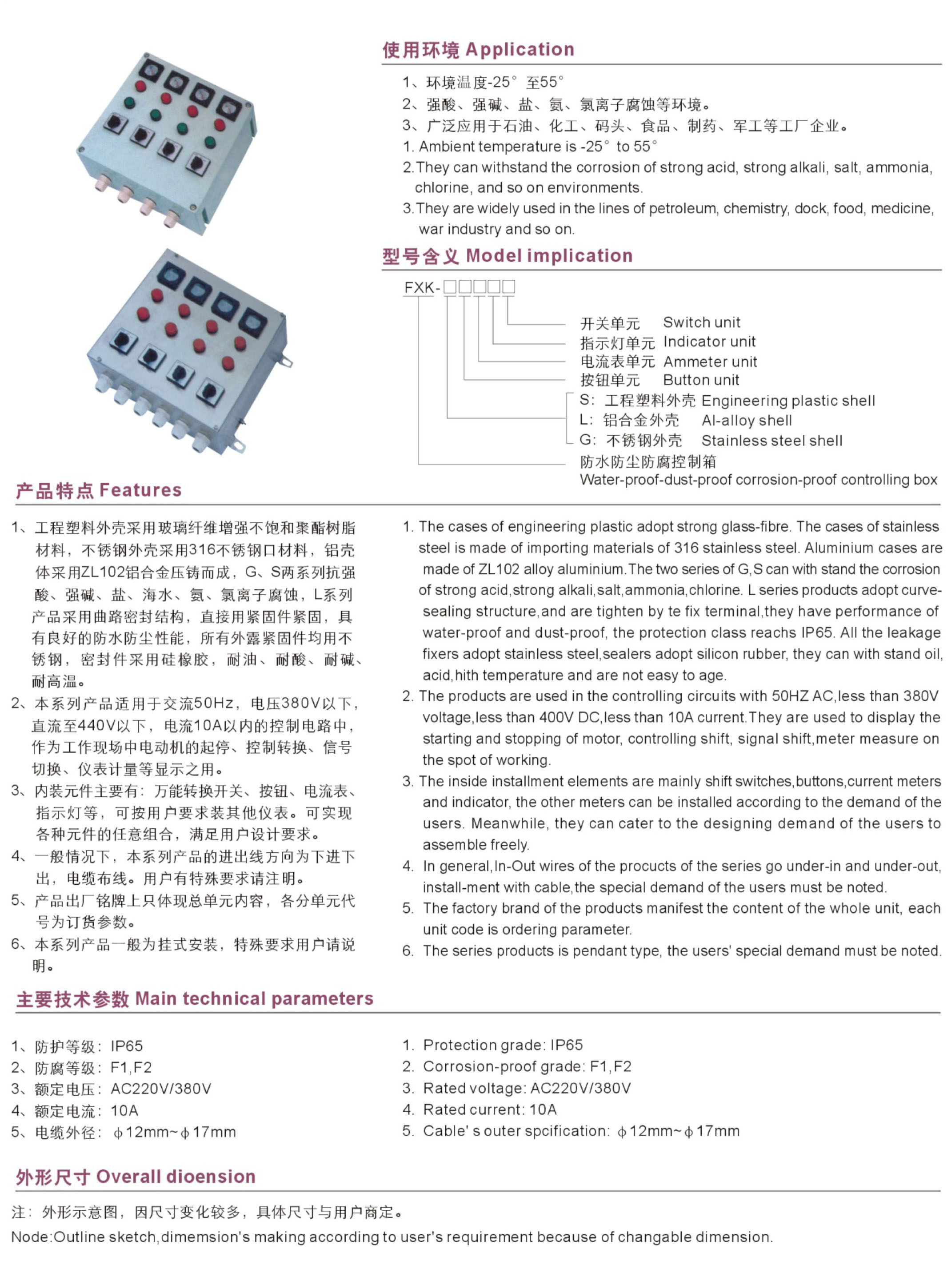 FXK系列防水防尘防腐控制箱