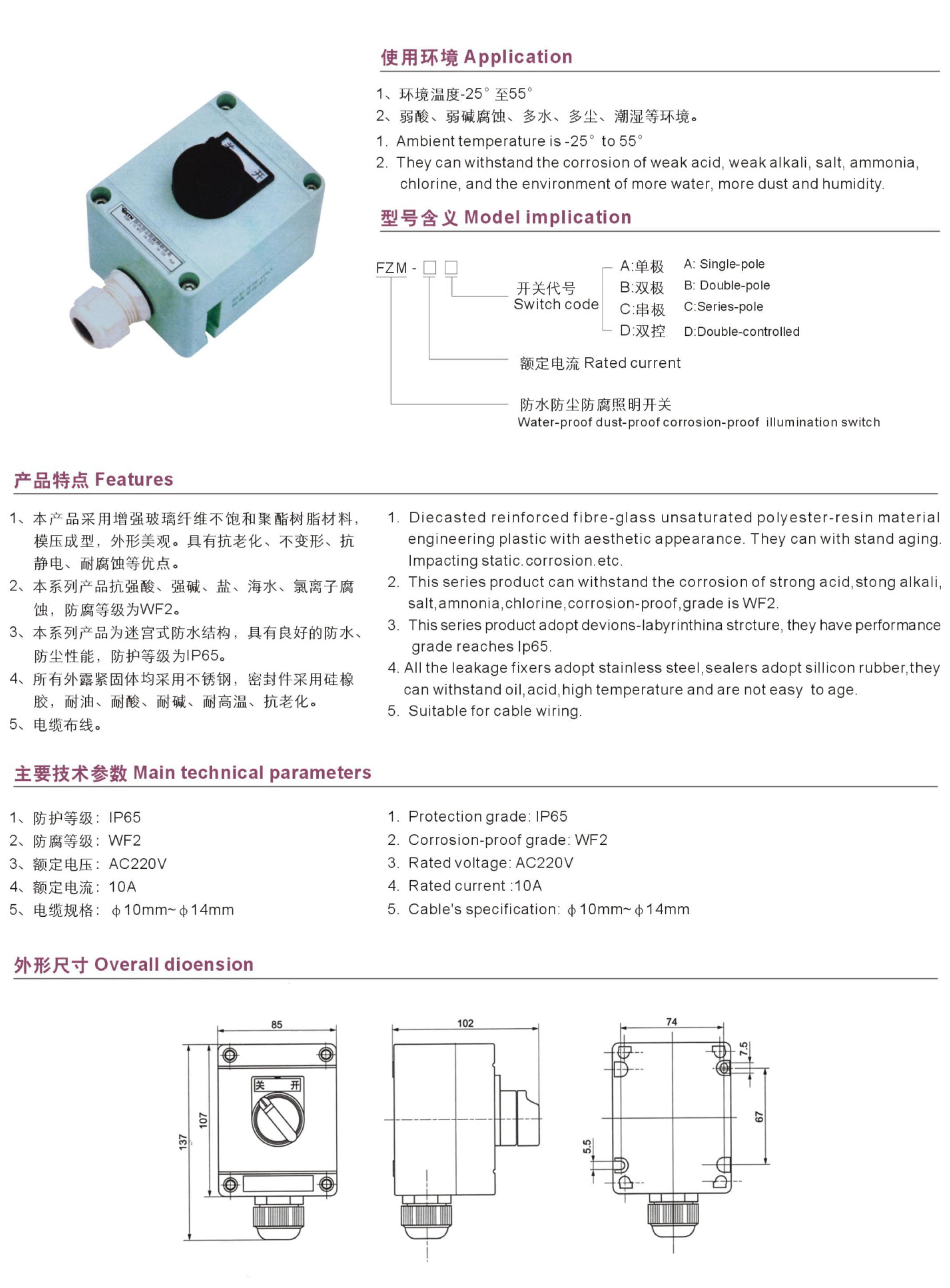FZM系列防水防尘防腐照明开关