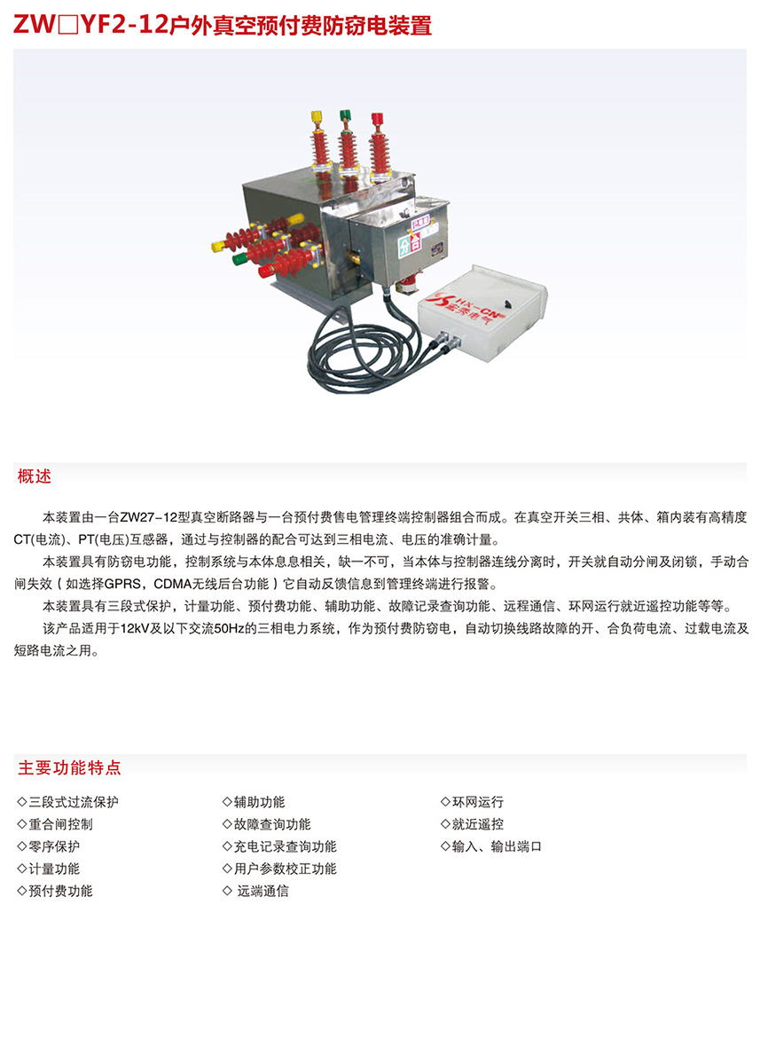 ZW口YF2-12户外真空预付费防窃电装置