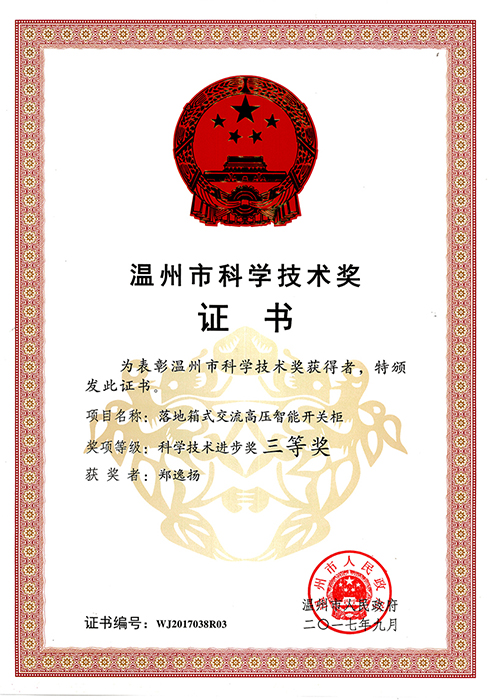 温州技术进步奖3等奖
