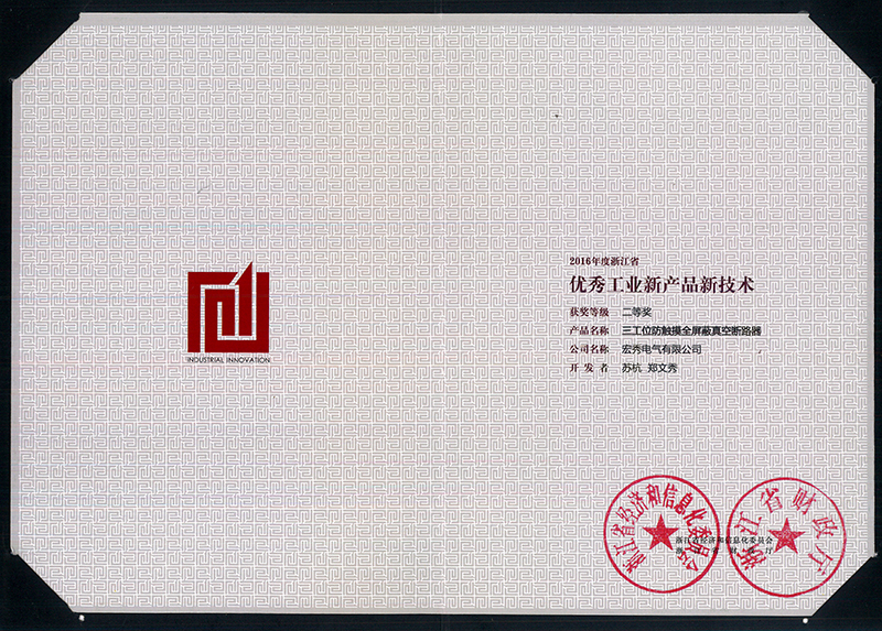 浙江省优秀工业新产品新技术二等奖(2016年)
