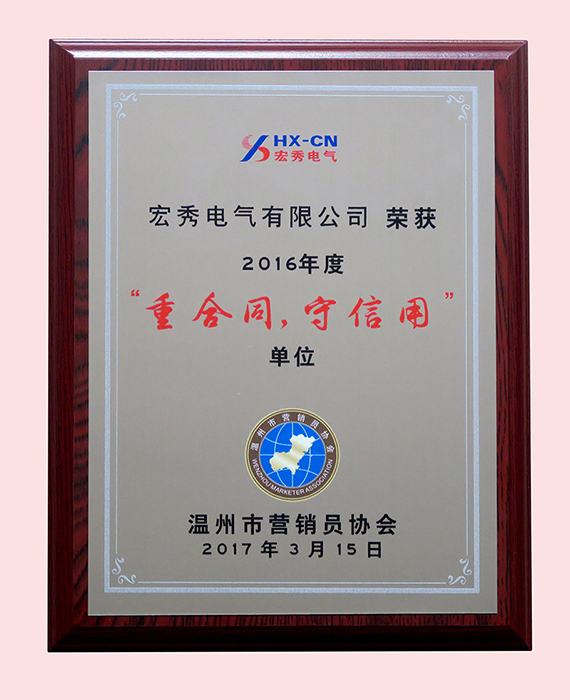 年度省电气行业协会重合同守信用奖牌