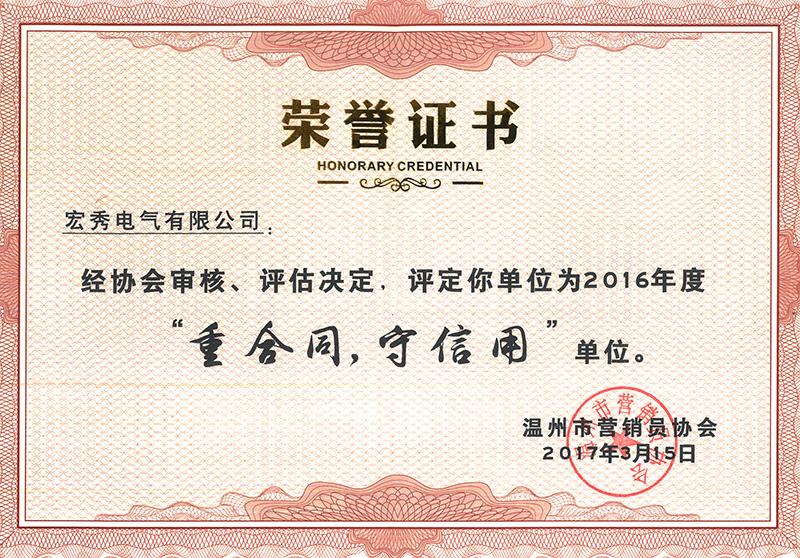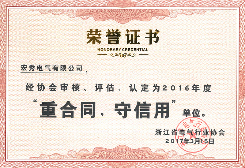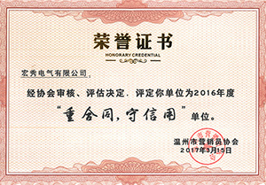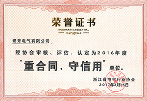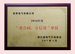 年度省电气行业协会重合同守信用证书