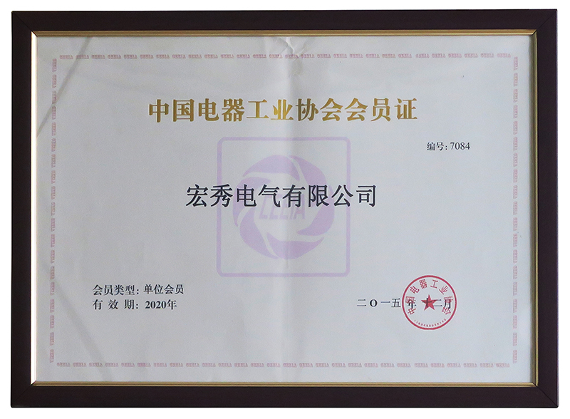 中国电器工业协会会员证书
